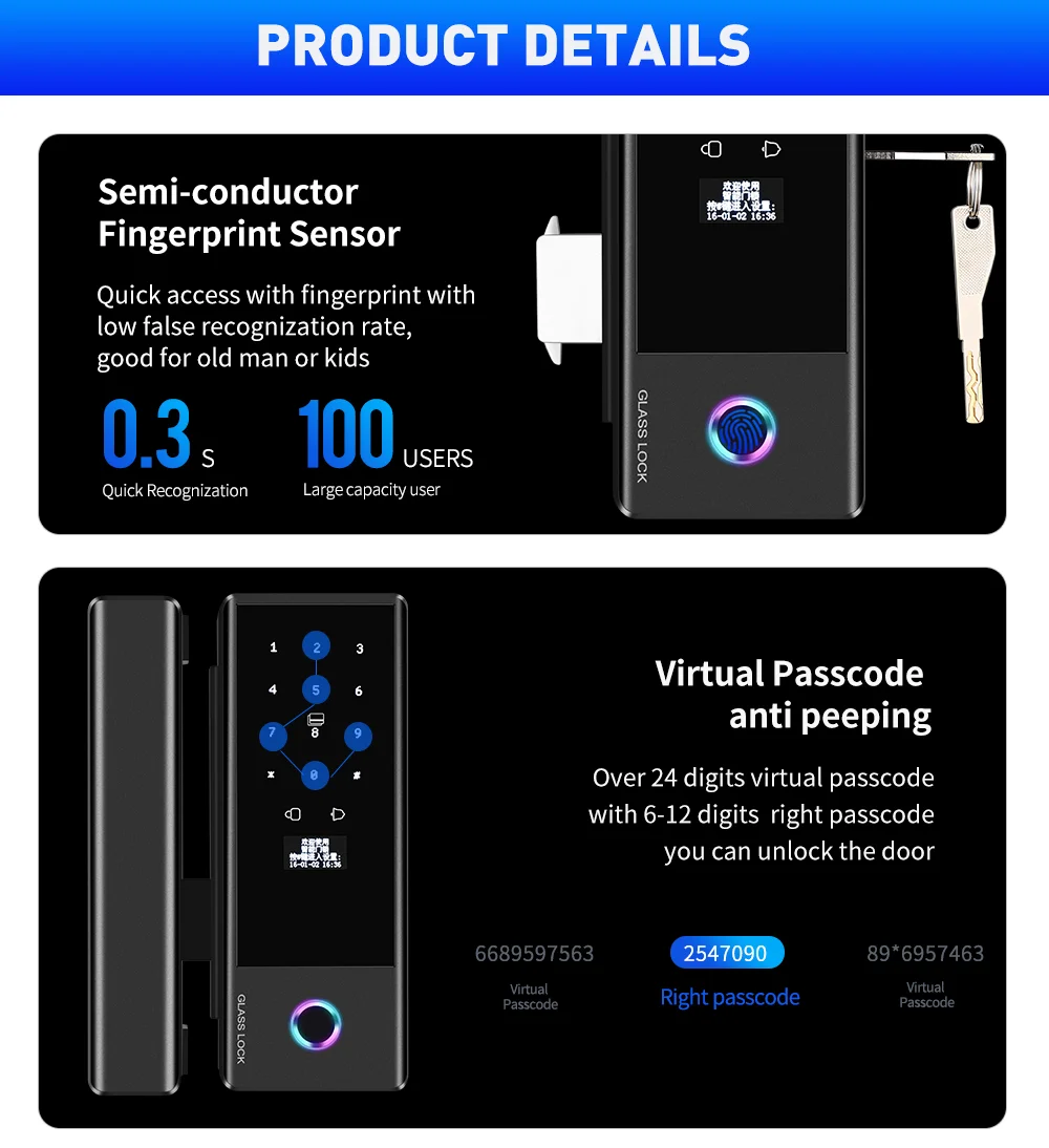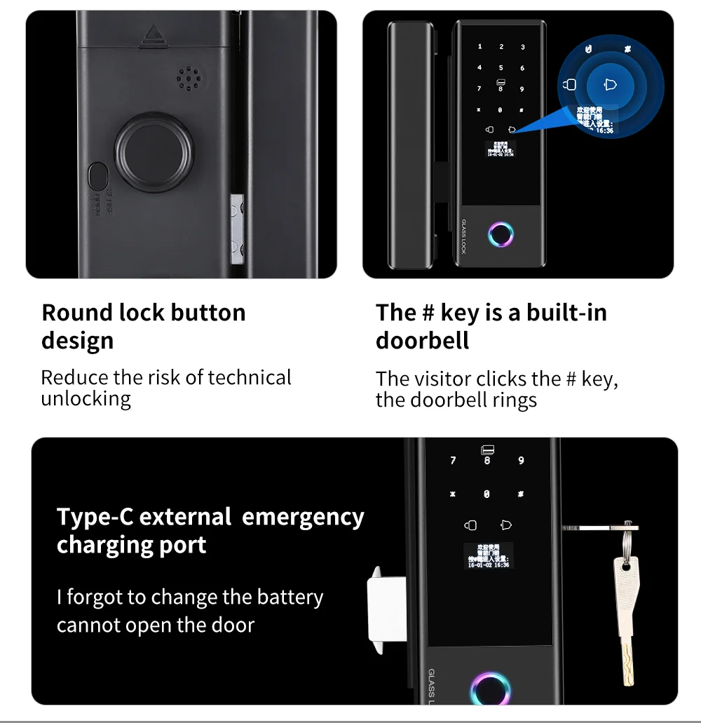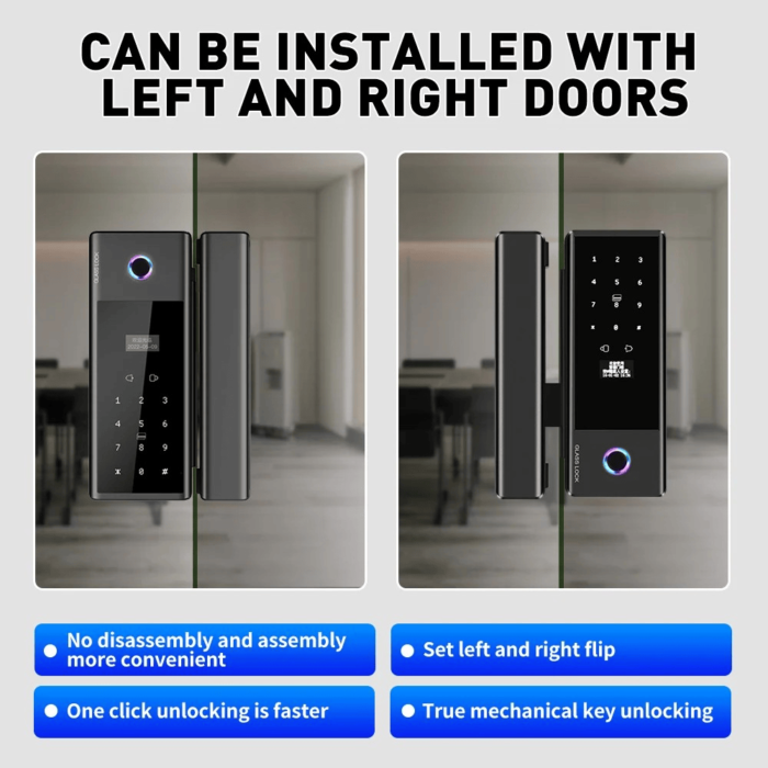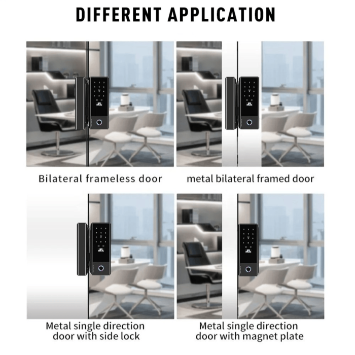 ✔ Keyless Entry for Glass Doors – No more lost keys! Unlock using a fingerprint, keypad, or smart access.