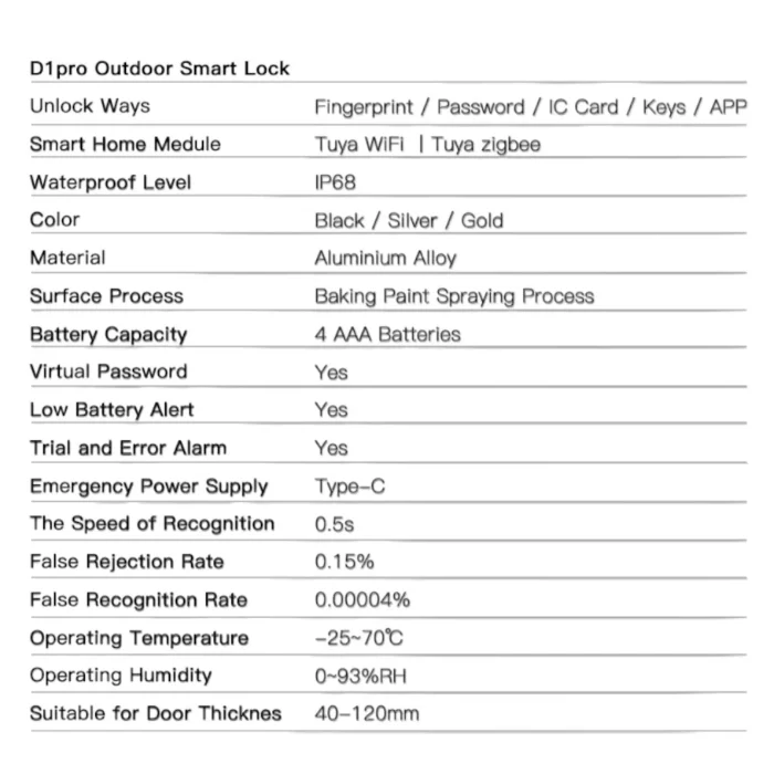 - 🔑 Multiple Unlocking Methods: Fingerprint, Password, IC Card, Mechanical Key, and App.