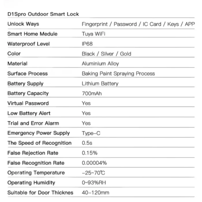 - 🔑 Multiple Unlocking Methods: Fingerprint, Password, IC Card, Mechanical Key, and App.